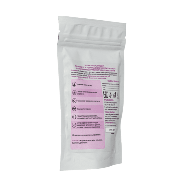 Успокаивает нервную систему, снимает эмоциональное напряжение, волнение и страхи. Защищает от стресса, придает ощущение радостного спокойствия. Нивелирует симптомы критических дней и облегчает проявления климакса. Нормализует засыпание и улучшает качество сна.